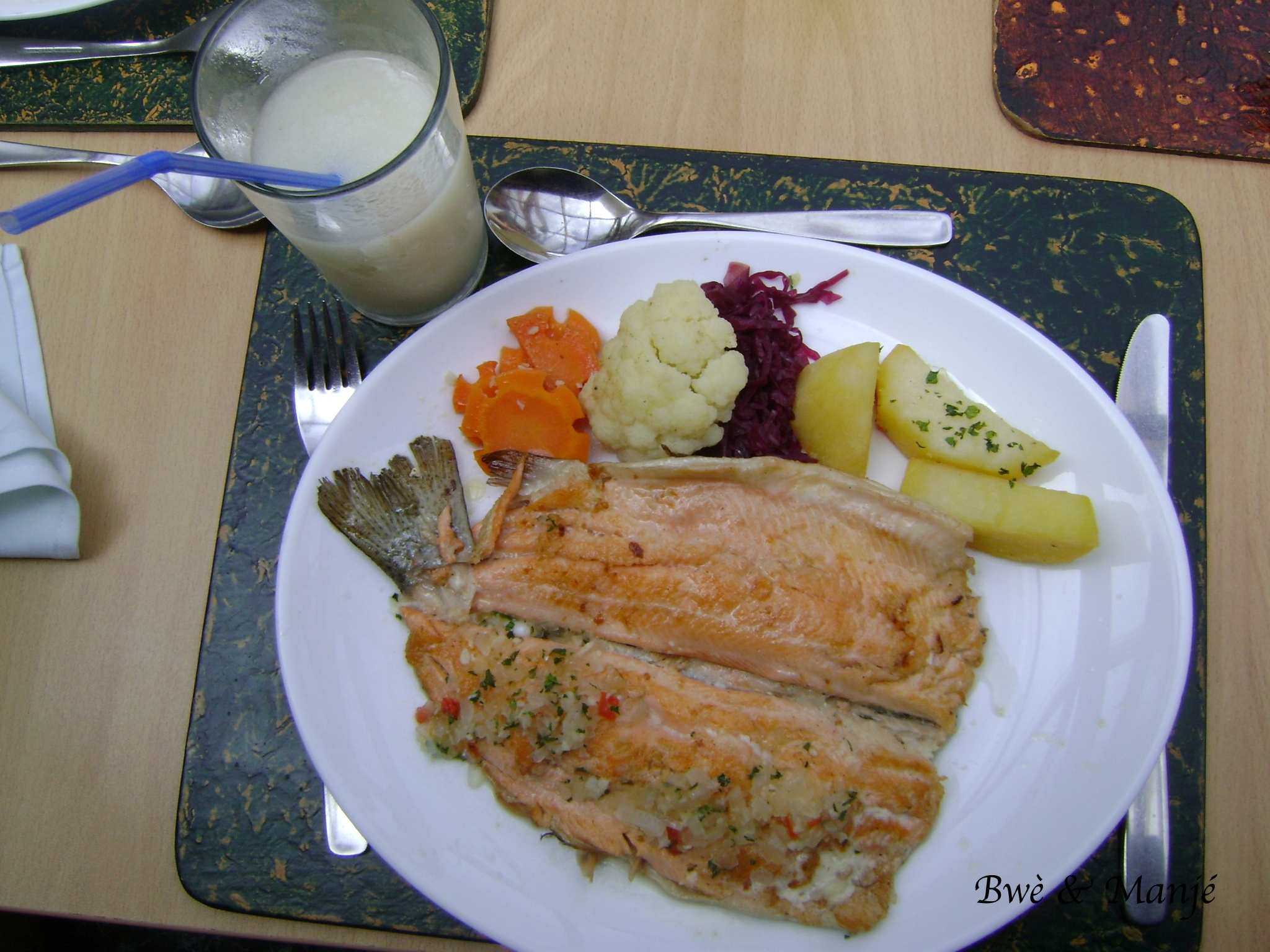 poisson, légumes et citronade.