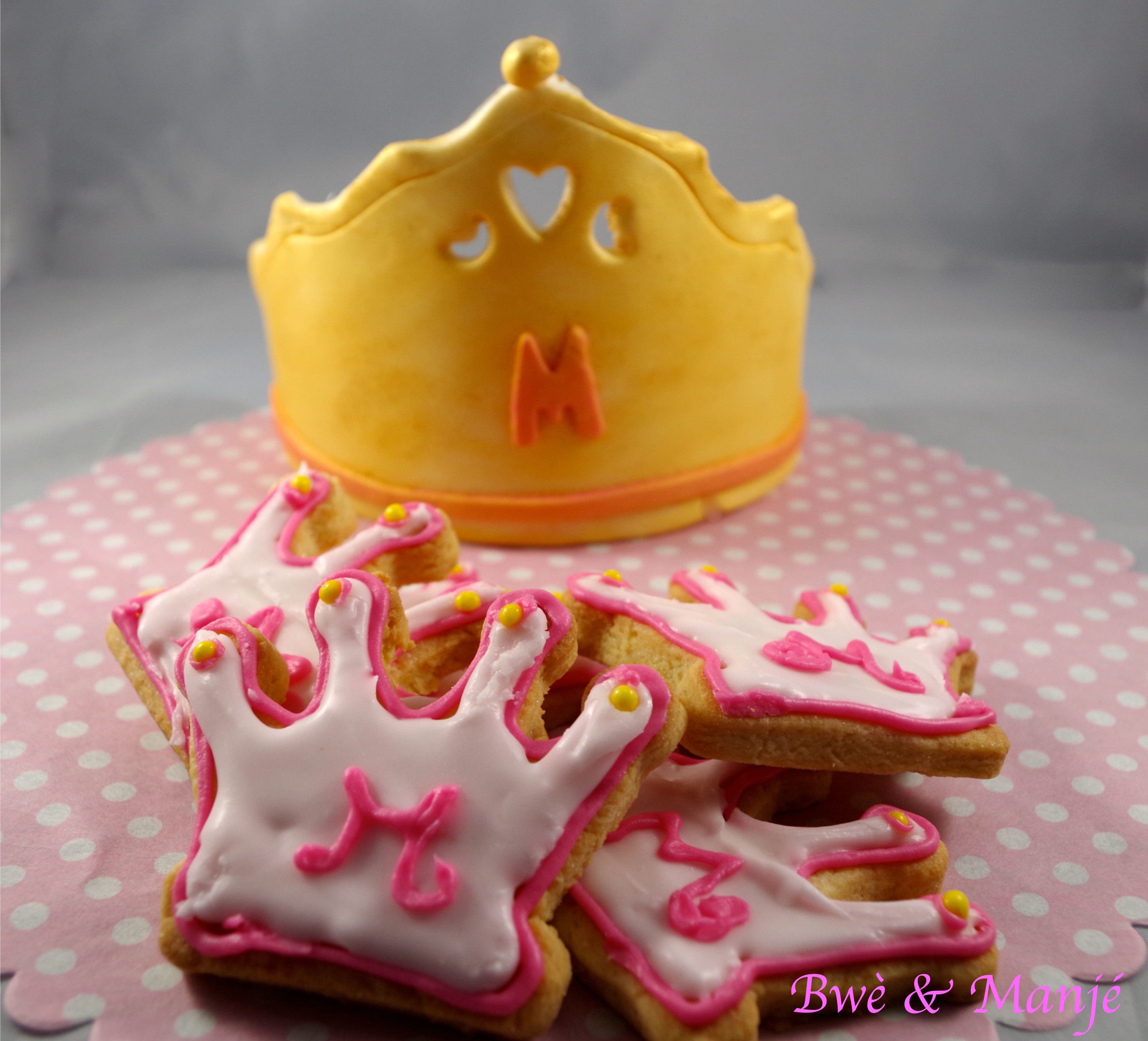 couronne en pâte à sucre et sablés décorés au glaçage royal