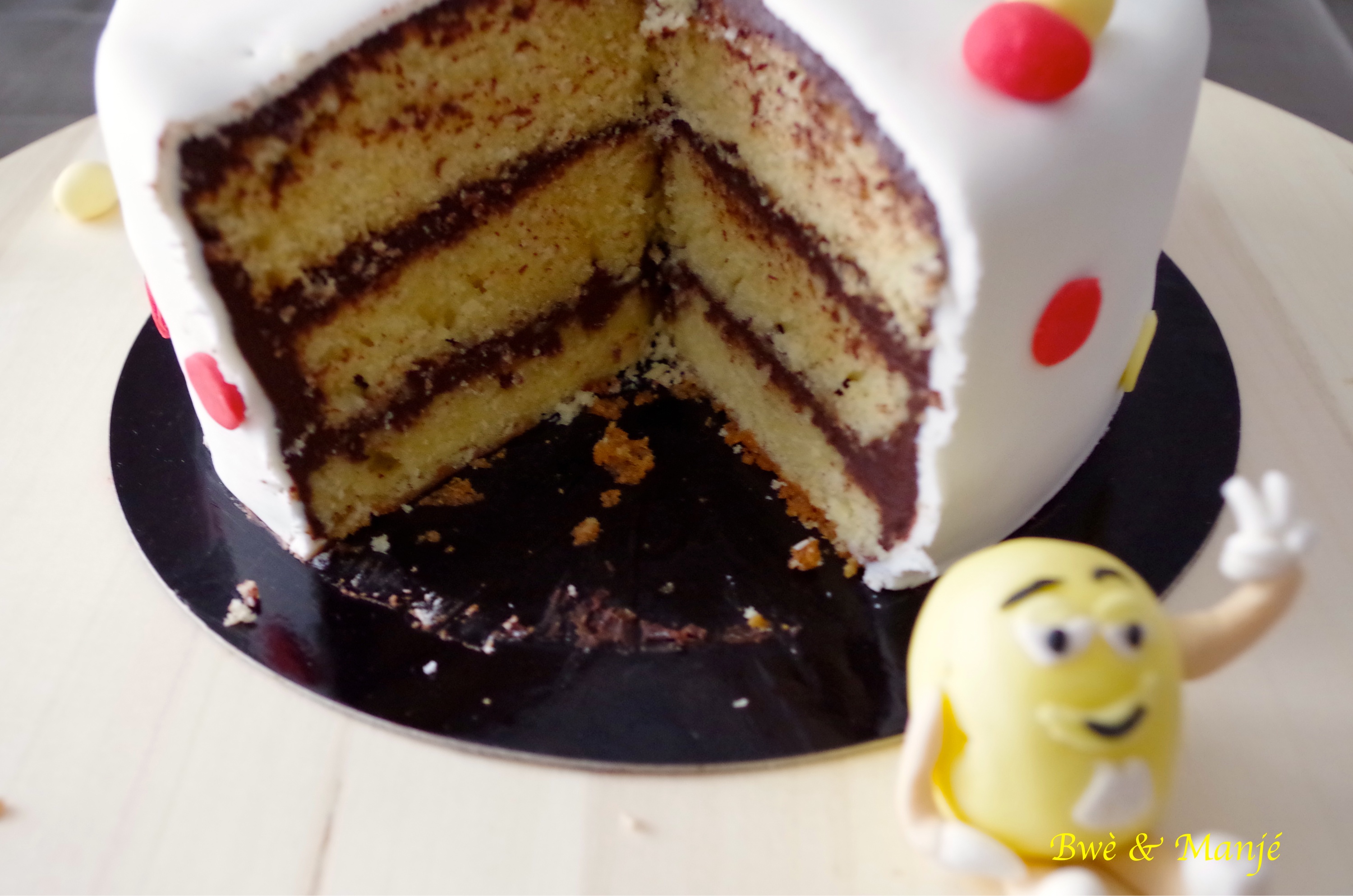 intérieur de mon premier gâteau en pâte à sucre