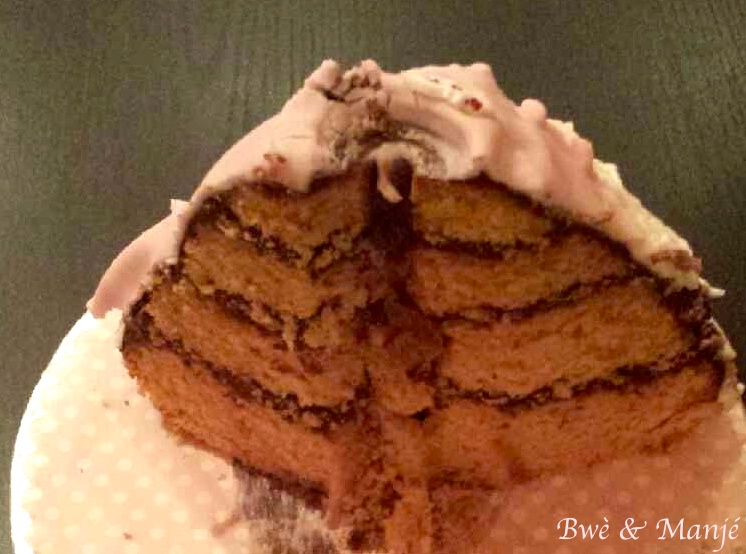 intérieur gâteau coco, ganache chocolat